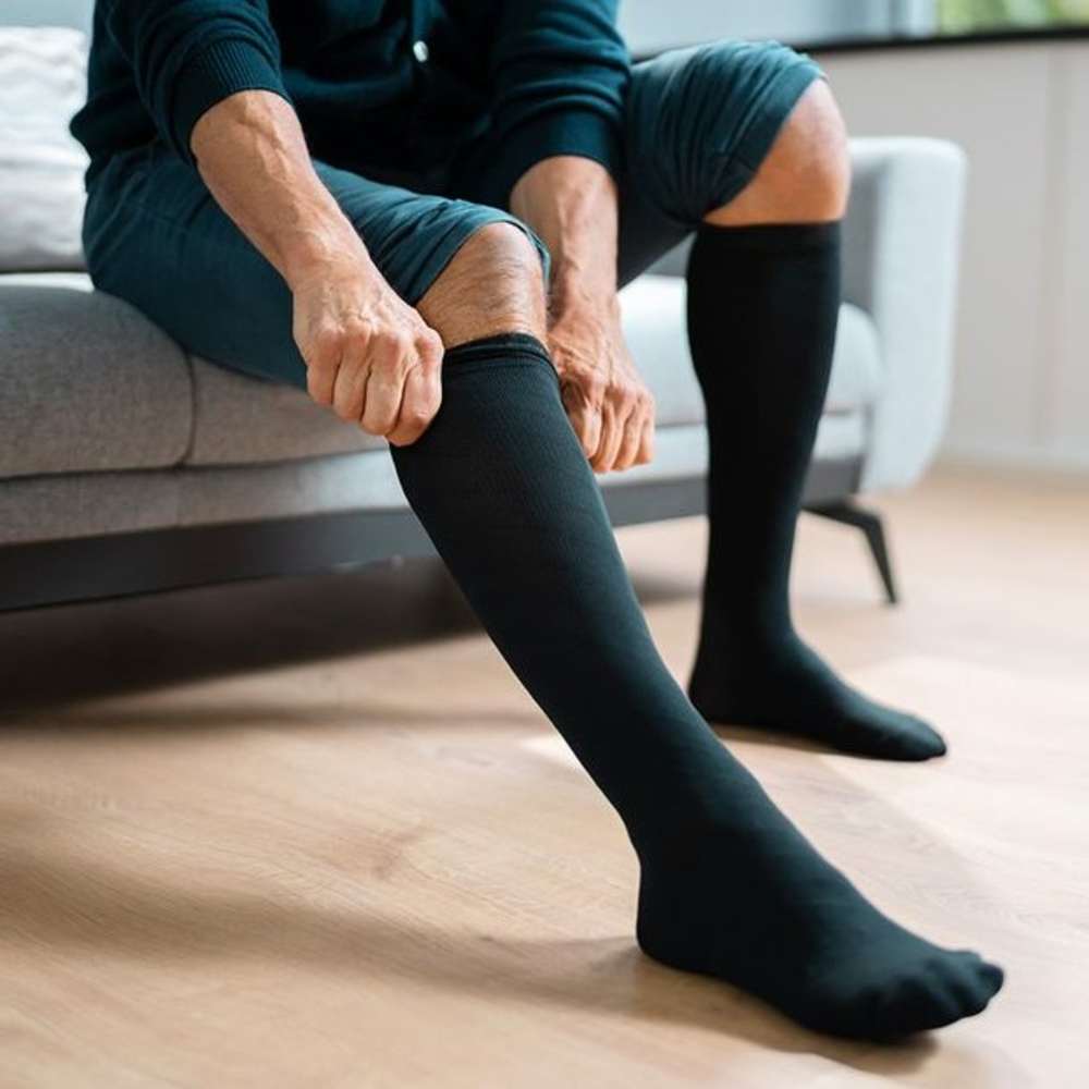 Compression socks apply pressure to the legs, aiding in the movement of blood back towards the heart. This helps prevent blood from pooling in the legs.